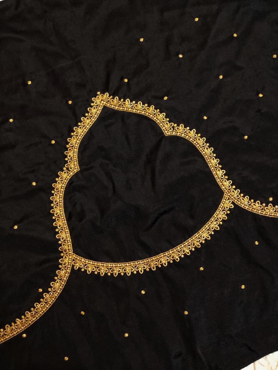 ₹500.00Original price was: ₹500.00.₹400.00Current price is: ₹400.00.Black color Fabric with Golden Zari thread Embroidery