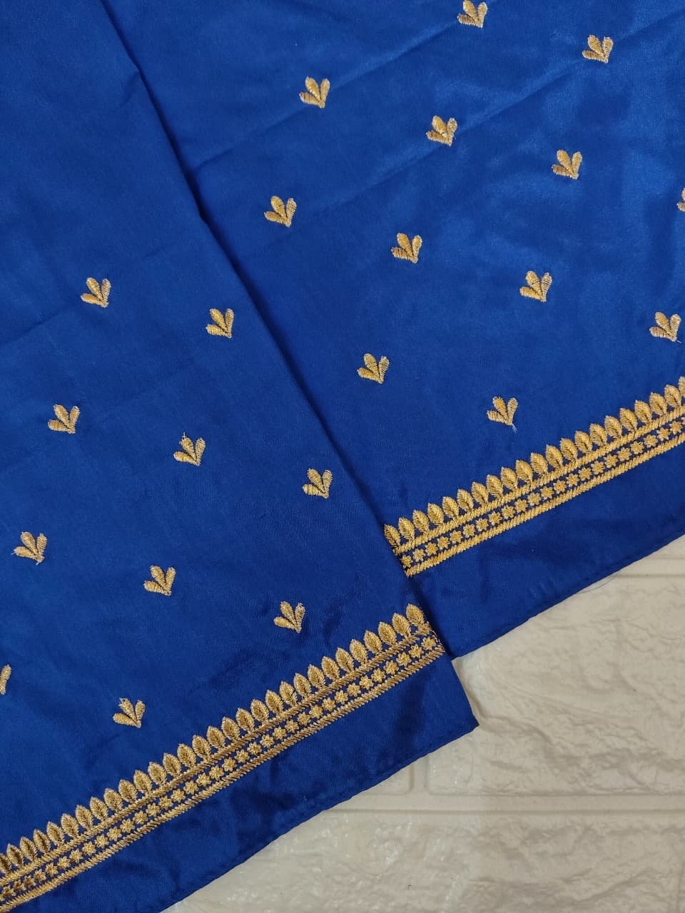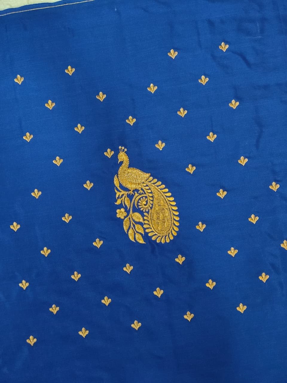 Blue Color Fabric with Golden Zari Embroidery Work