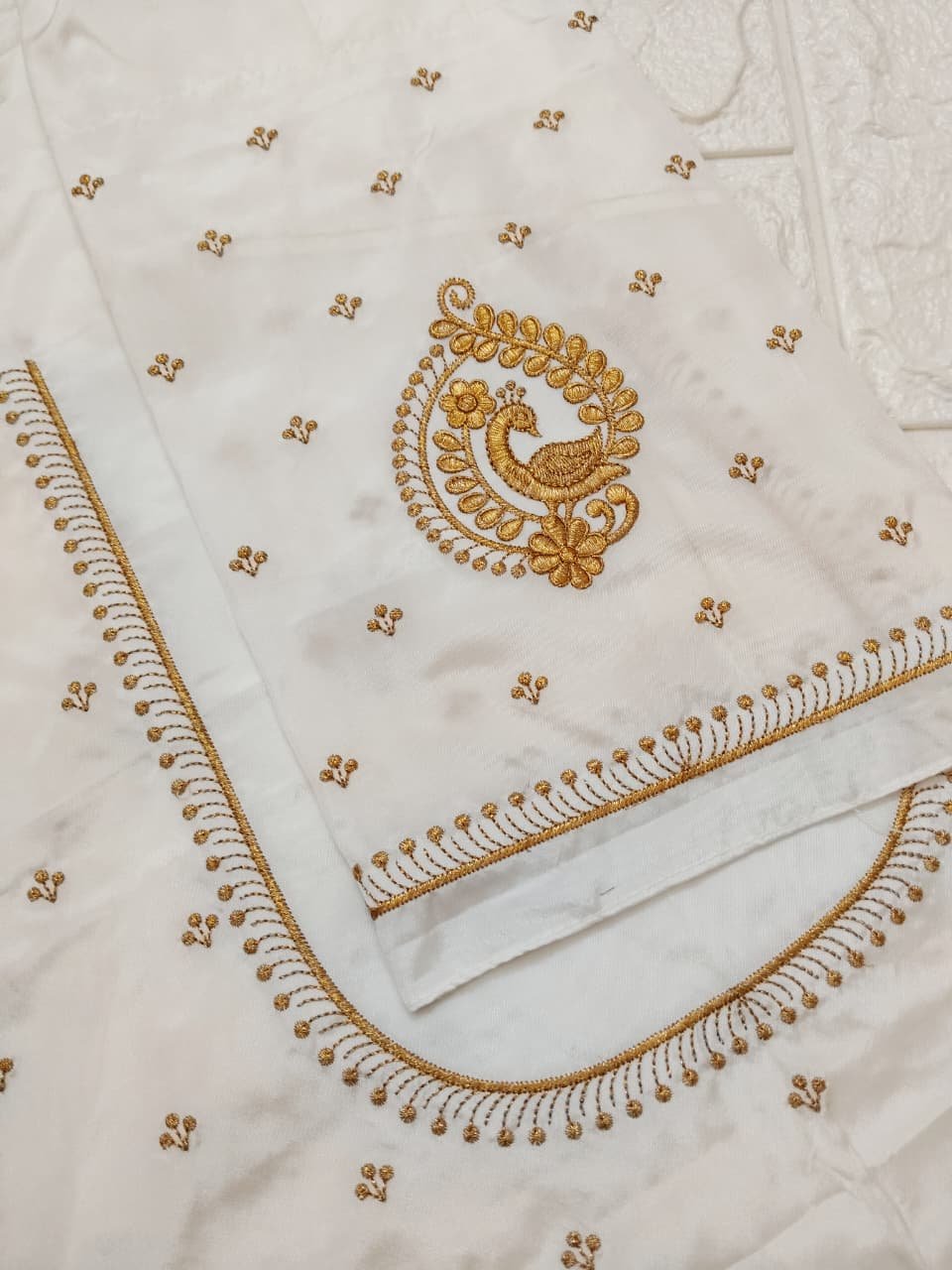 Off-White Color Fabric with Golden Zari Embroidery Work