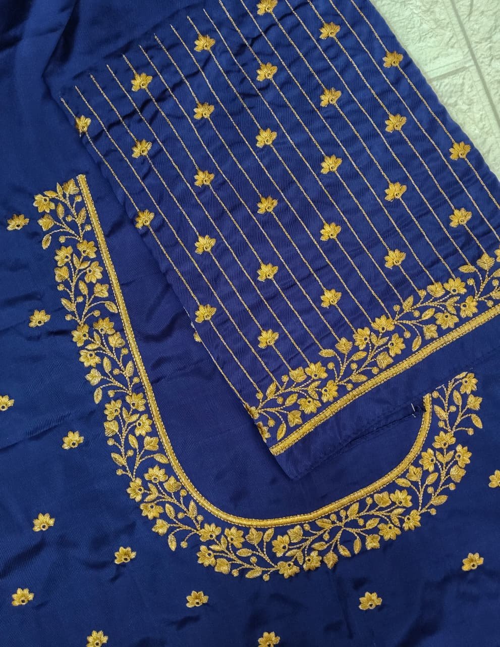 Ink Blue Color Fabric with Golden Zari Embroidery Work