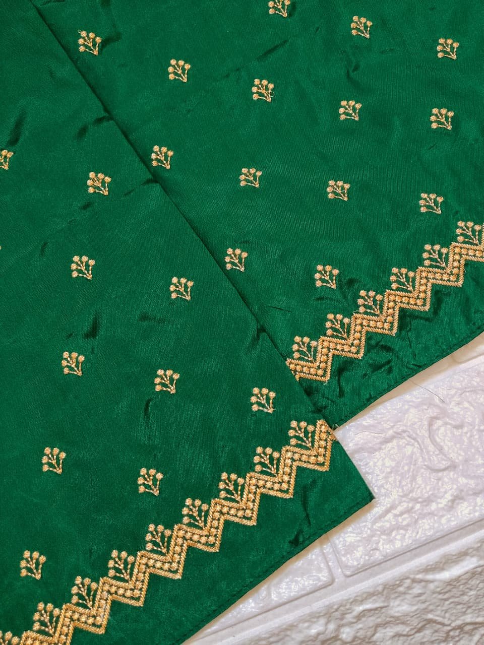 Green color Fabric with Golden Zari thread Embroidery
