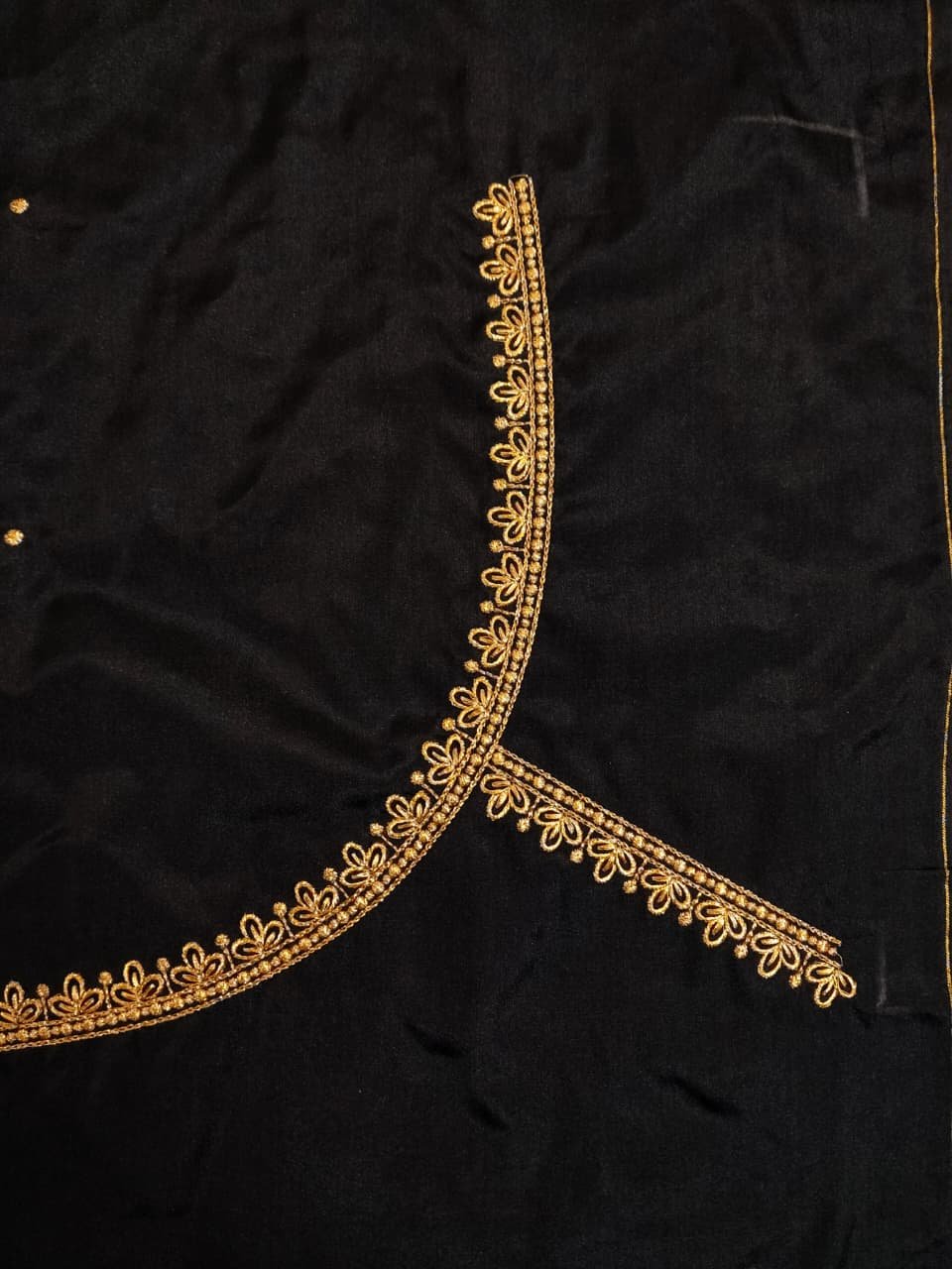 Black Color Fabric with Golden Zari Embroidery Work