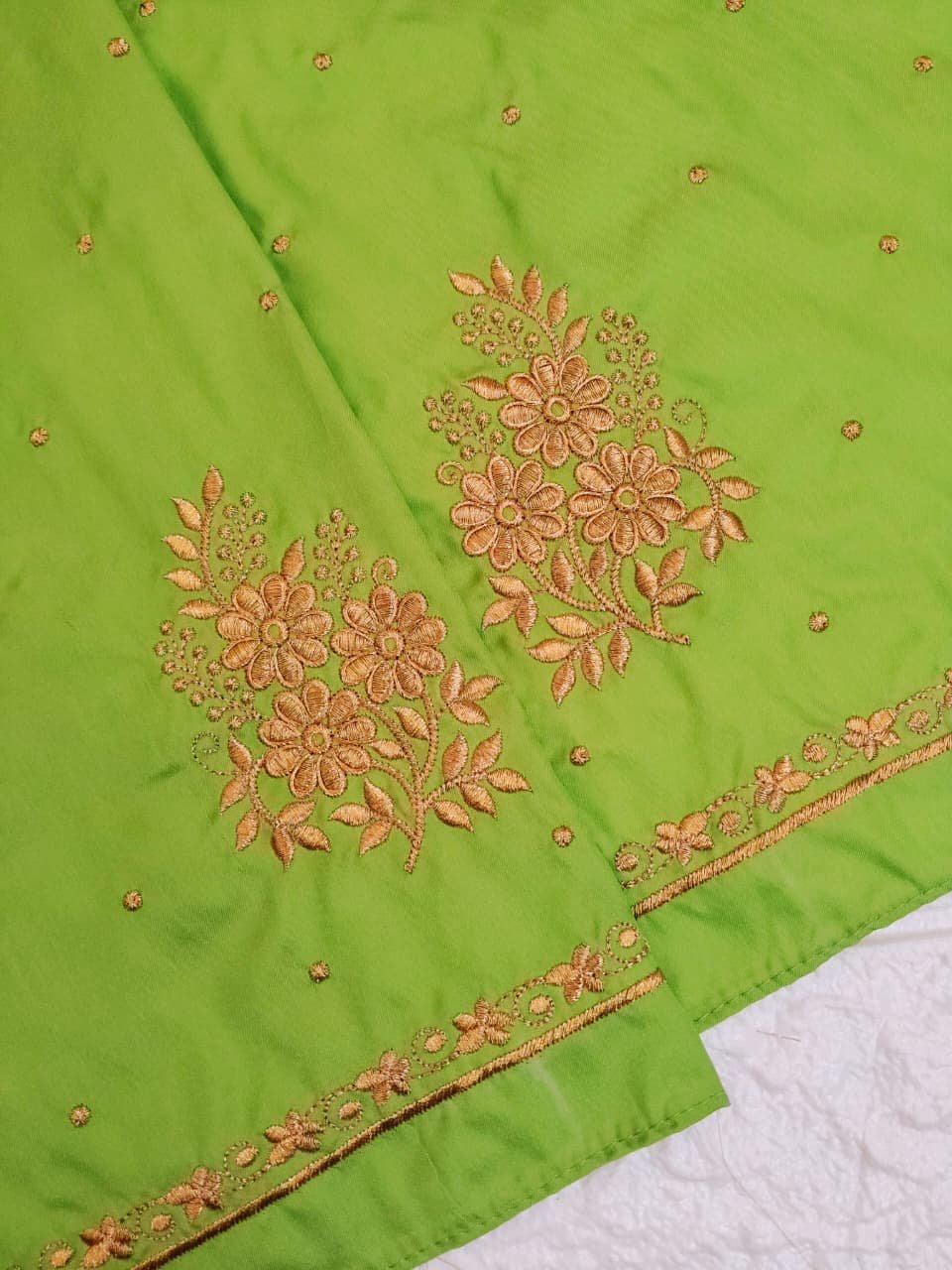 Parrot Green Color Fabric with Golden Zari Embroidery Work