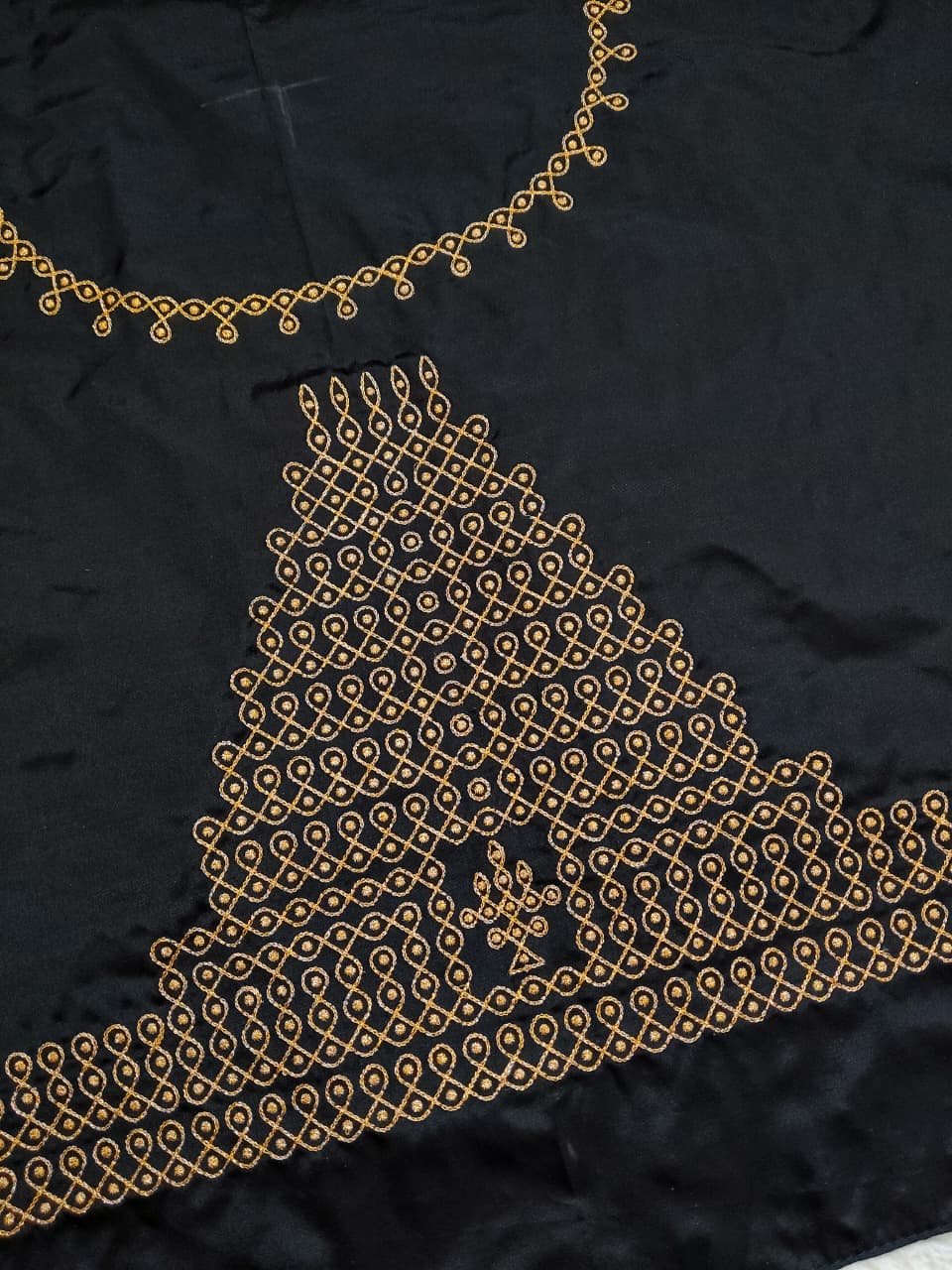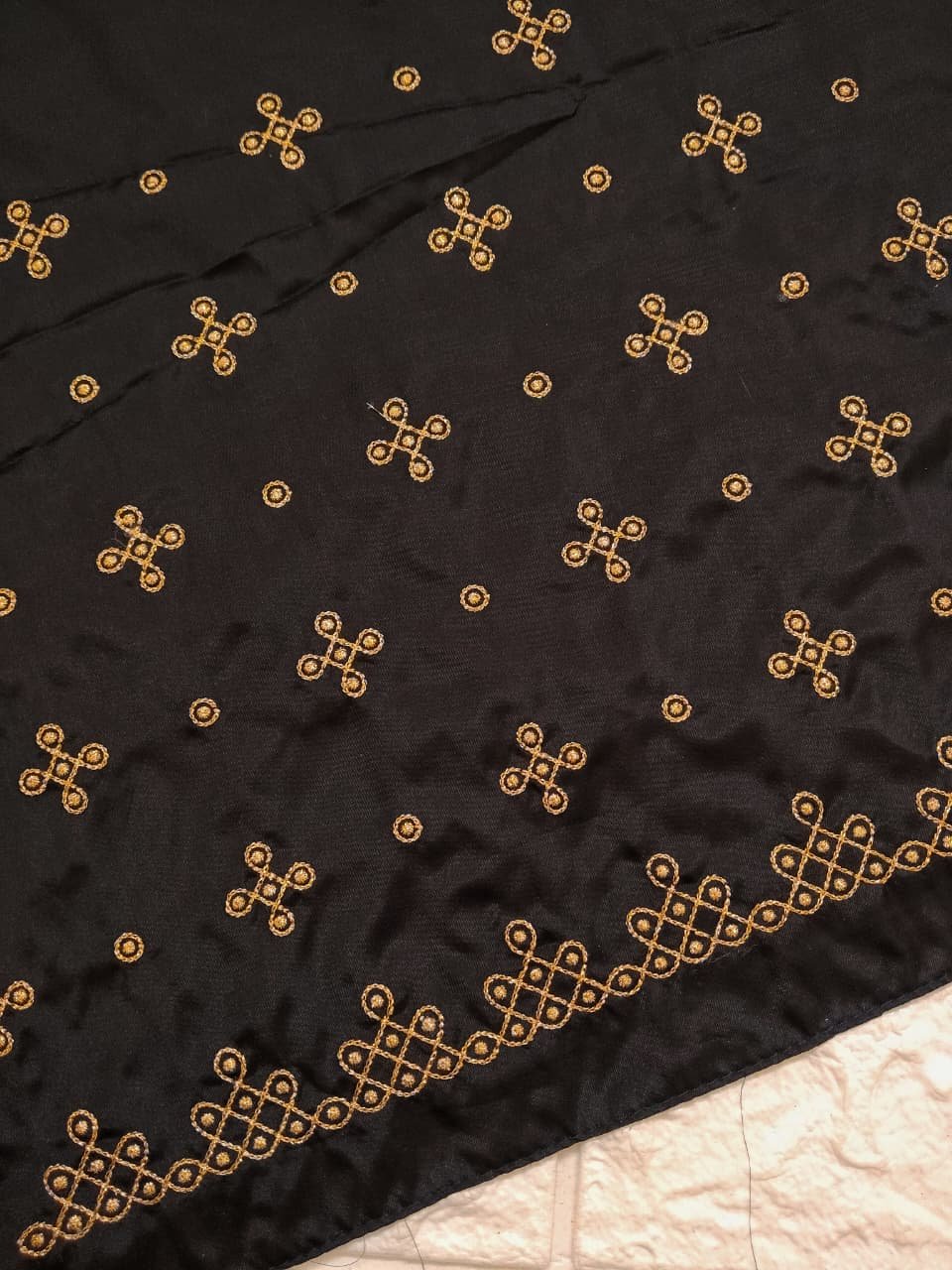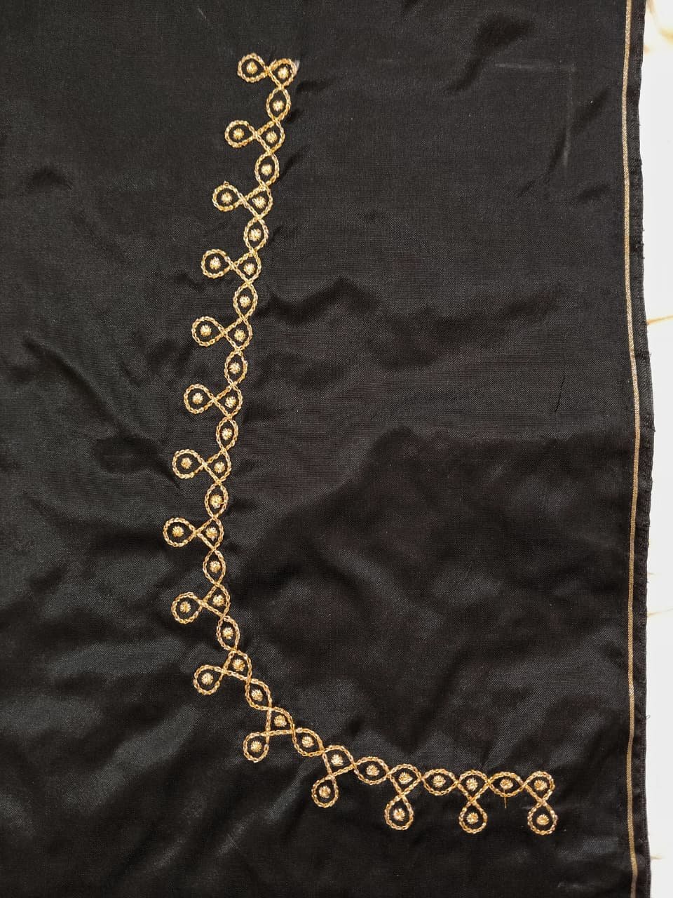 Black color Fabric with Golden Zari thread Embroidery