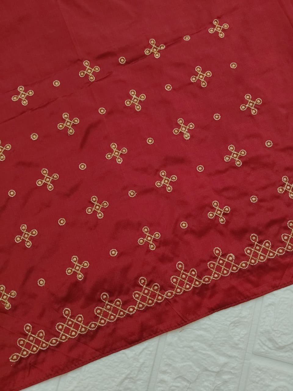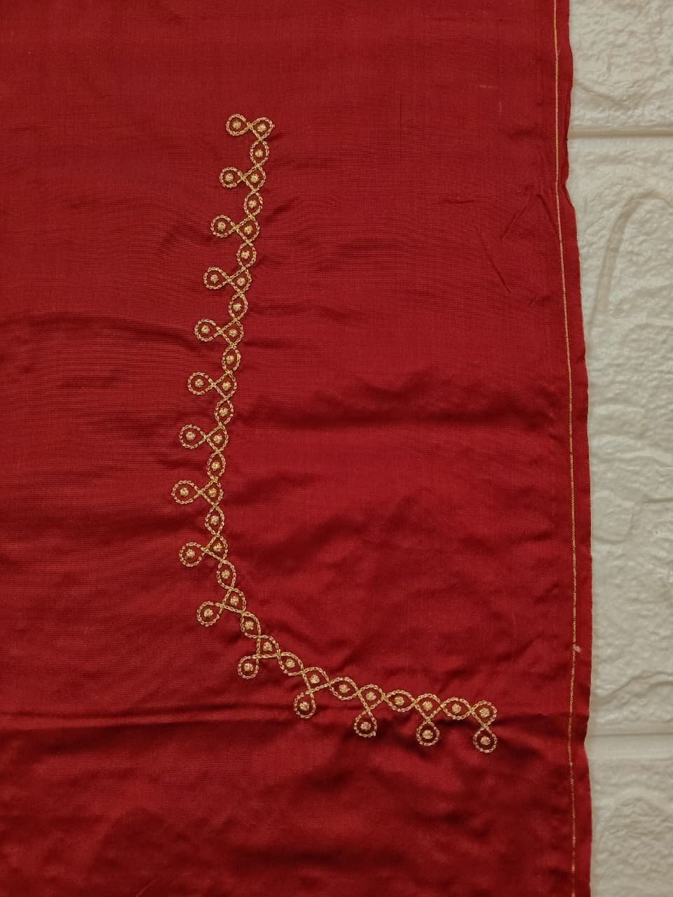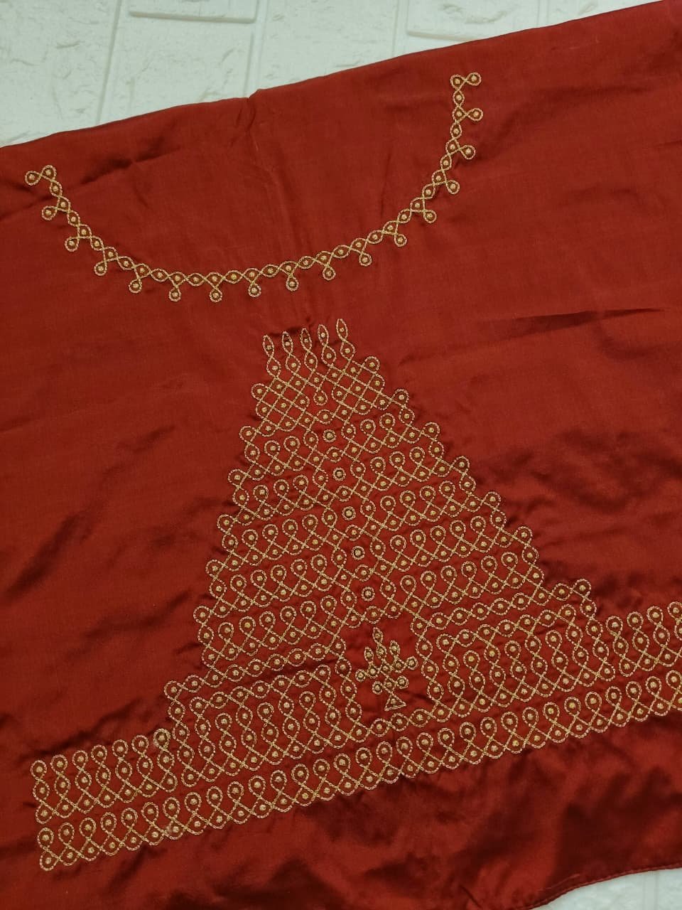 Marron color Fabric with Golden Zari thread Embroidery