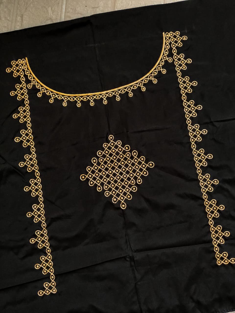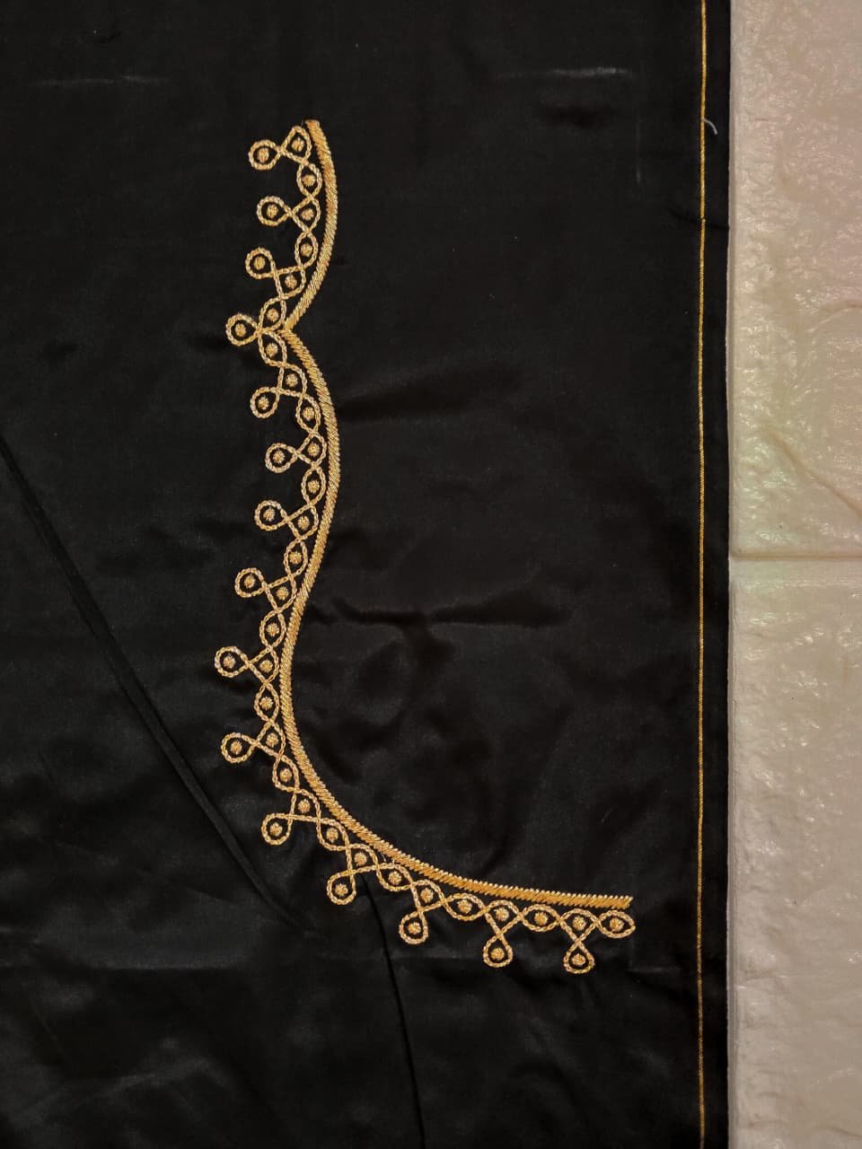 Black Color Fabric with Golden Zari Embroidery Work