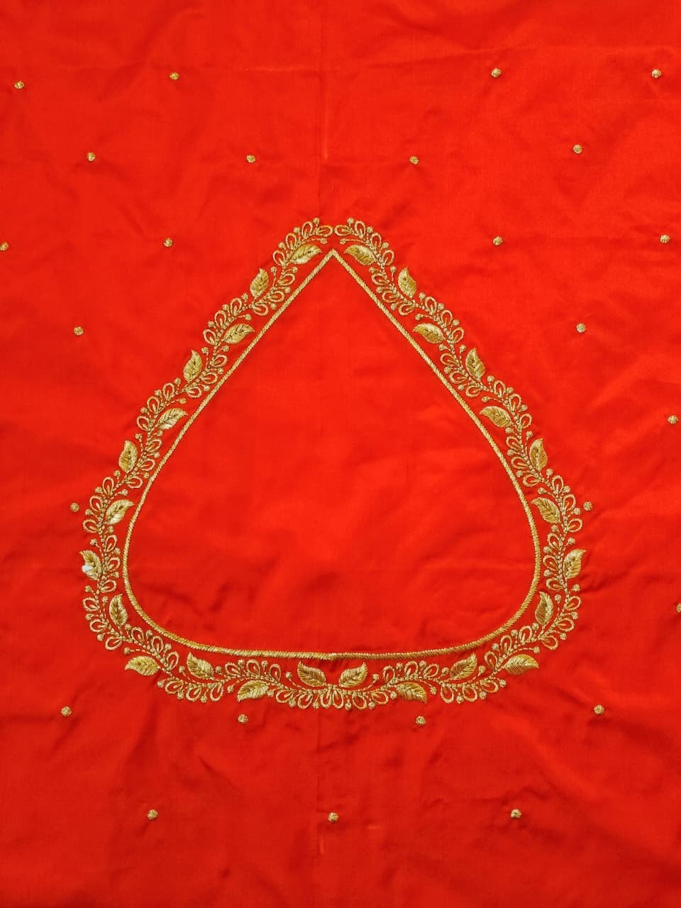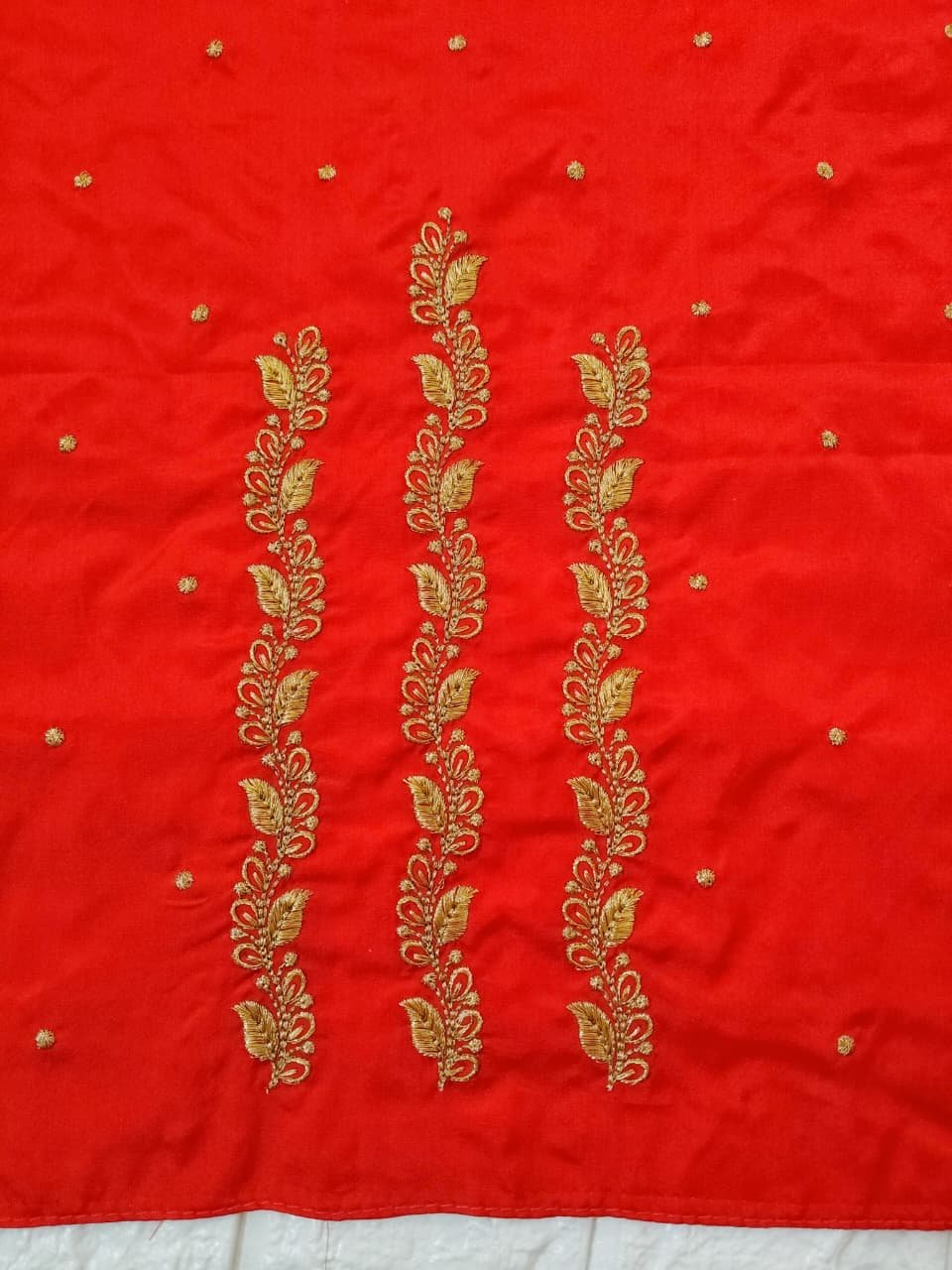 Red Color Fabric with Golden Zari Embroidery Work