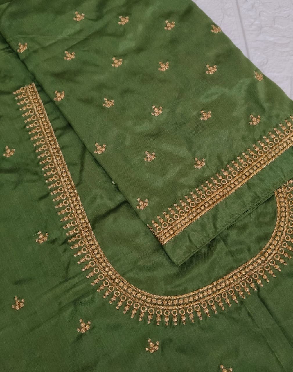 OliveGreen Color Fabric with Golden Zari Embroidery Work