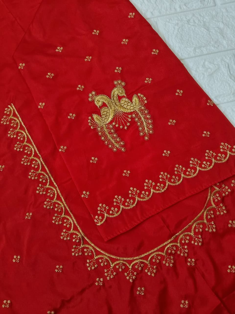 Red Color Fabric with  Golden  Zari Embroidery Work
