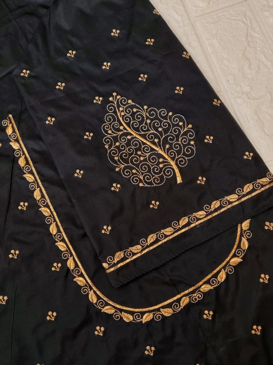 Black Color Fabric with  Golden  Zari Embroidery Work