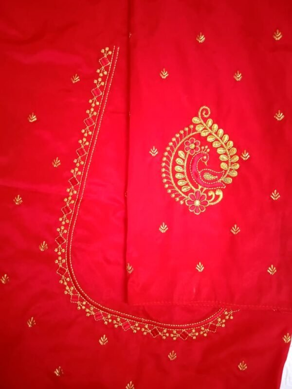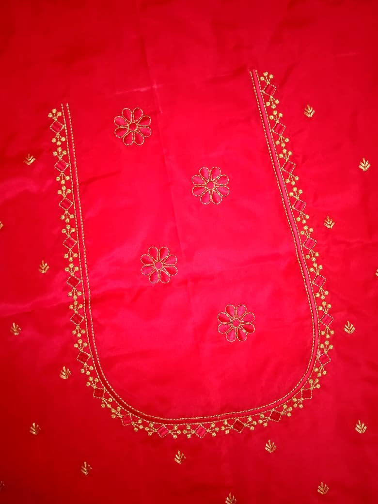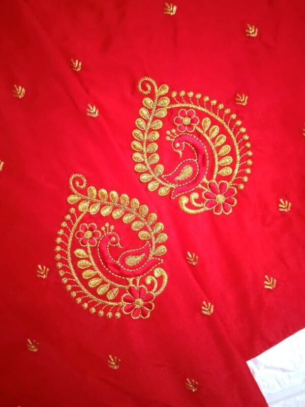Red Color Fabric with Red silk thread and Gold Zari Embroidery Work