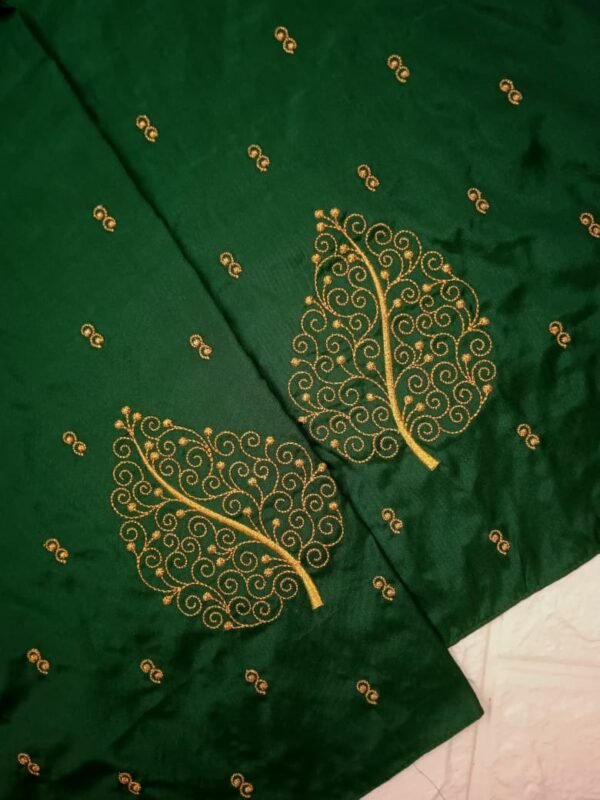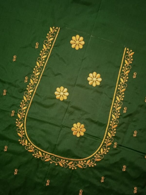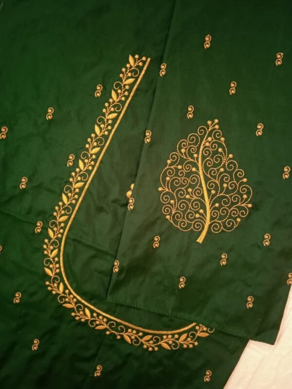 BottleGreen Color Fabric with Gold Zari Embroidery Work