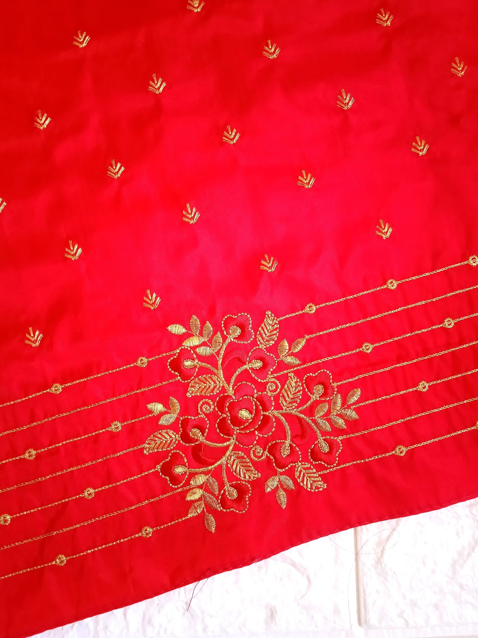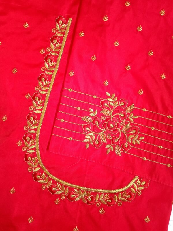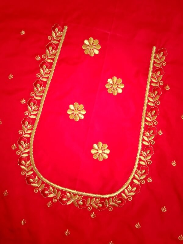Red Color Fabric with Golden Zari Embroidery Work