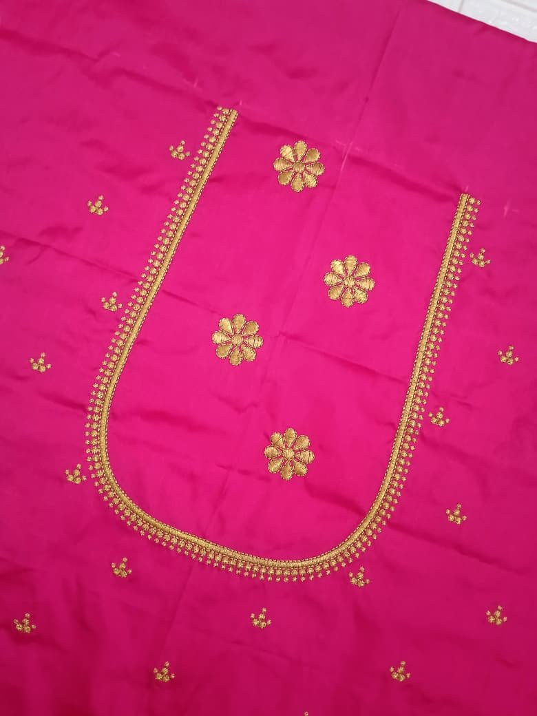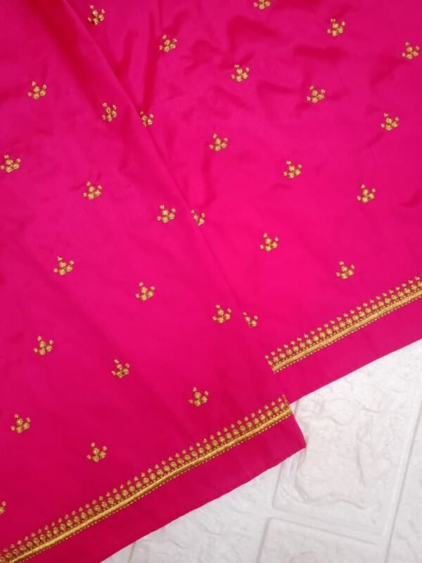 Rani Pink color Fabric with Golden Zari thread Embroidery