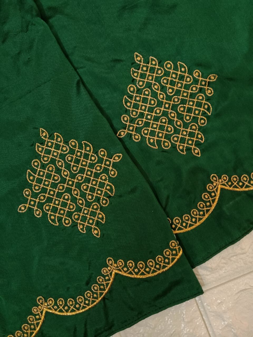 Bottle Green Color Fabric with  Golden  Zari Embroidery Work