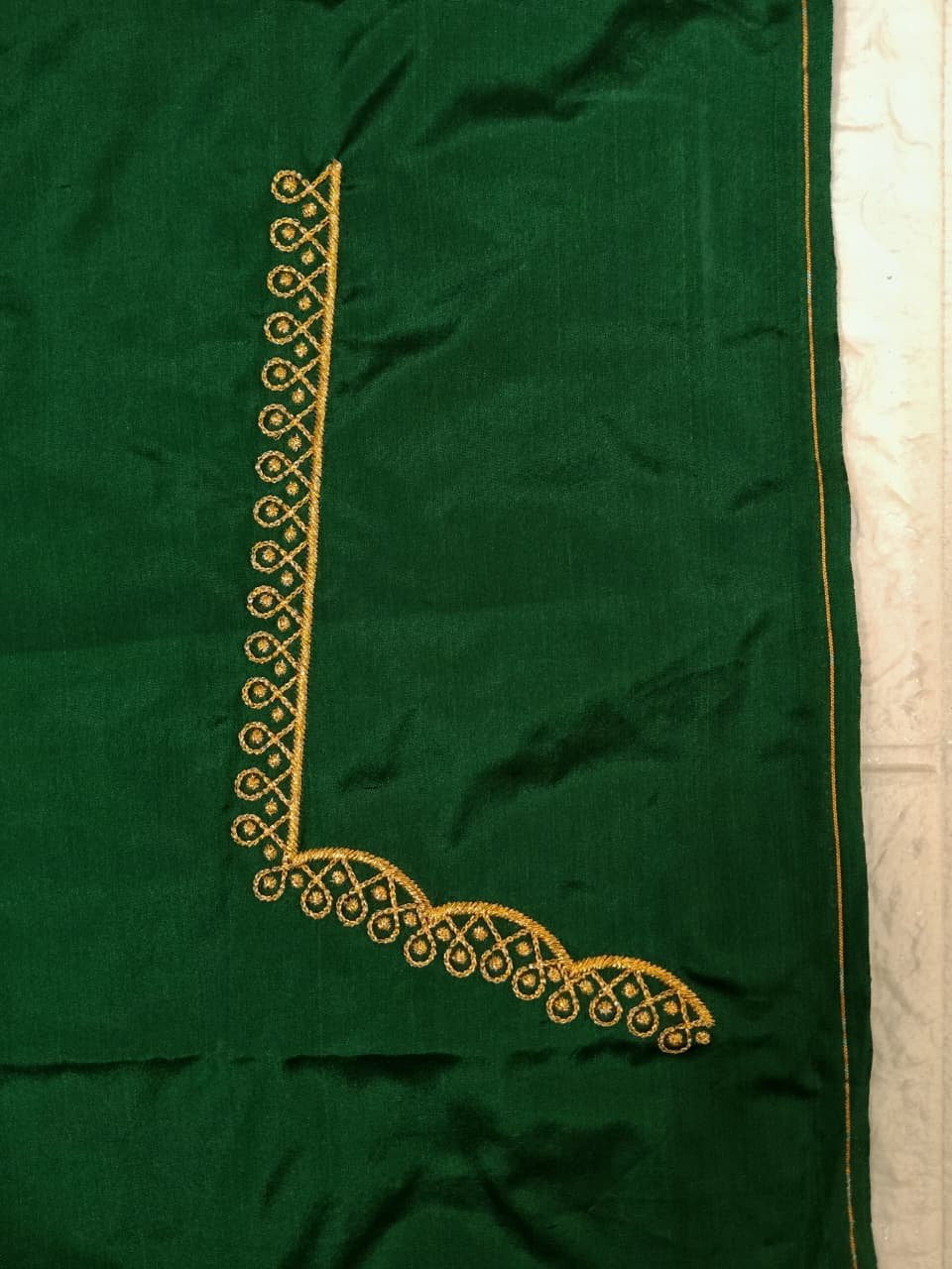 Bottle Green color Fabric with Golden Zari thread Embroidery